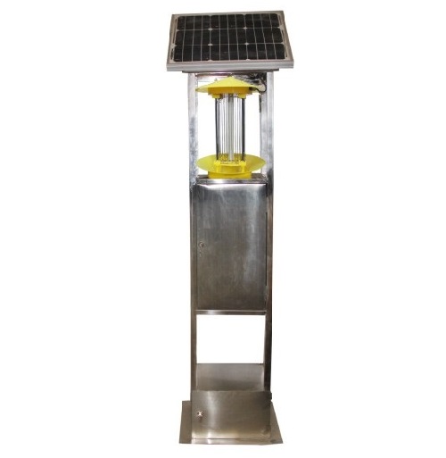 箱體式太陽能殺蟲燈是利用太陽能電池板作為用電來源,將白天太陽能發(fā)的電貯存起來,晚上放電給殺蟲燈具,引誘害蟲撲向燈的光源,光源外配置高壓擊殺網(wǎng),殺死害蟲。